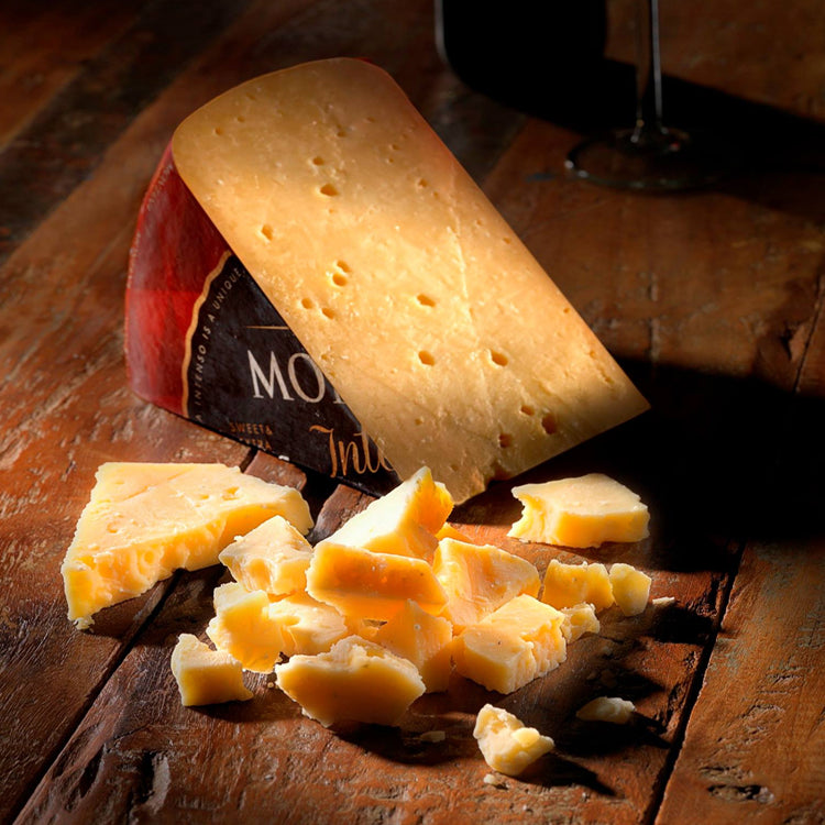 Montana Intenso is a unique extra aged Dutch cheese with a sweet and extra piquant taste. Montana Intenso is ripened by the Veldhuyzen family on wooden shelfs for at least 45 weeks.