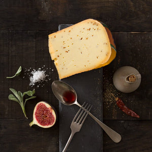Veldhuyzen Gouda with Cumin is a true Dutch classic that combines the creamy, smooth character of traditional Gouda with the warm, aromatic flavor of cumin seeds. Carefully aged and crafted by the Veldhuyzen family, this cheese offers a delightful balance of mild, buttery notes and a subtle spicy kick.