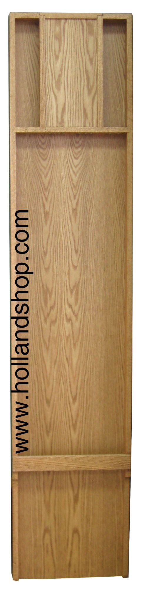 A Sjoelbak board is a wooden board 2 metres x 0.4 metres with three sides about 5cm high. Wooden disks of diameter 5.2cm are pushed up the board from the front of the game which is without a side barrier. 43cm from the front of the board, a flat bar of wood lies across the top of the game under which the disks pass. This is called the "start bar". In league and competition games, it is forbidden to stack disks on the start bar but players indulging in friendly games often use it for just this purpose. 39cm from the back of the board, a piece of wood is set vertically with 4 slots or arches spaced evenly along the bottom. This is called the "gate bar", the arches on it are marked 2, 3, 4, 1 from left to right and are 6cm wide. Behind the arches, the board is divided lengthways to the back of the board into 4 partitions. These containers separate the disks that have passed through the different arches.
